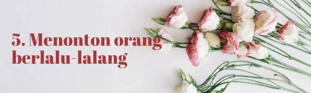Menonton atau melihat orang (people-watching) adalah permainan favorit para psikolog untuk menghabiskan waktu panjang mereka. Namun, kamu juga bisa melakukannya dan menikmati kegiatan ini! Umumnya, kamu membutuhkan rasa penasaran yang besar untuk memerhatikan orang-orang yang berlalu-lalang di hadapanmu. Kamu juga bisa mengamati kejadian yang nggak biasa. Melalui permainan ini juga, kamu bisa memiliki pengertian yang lebih baik pada orang lain.