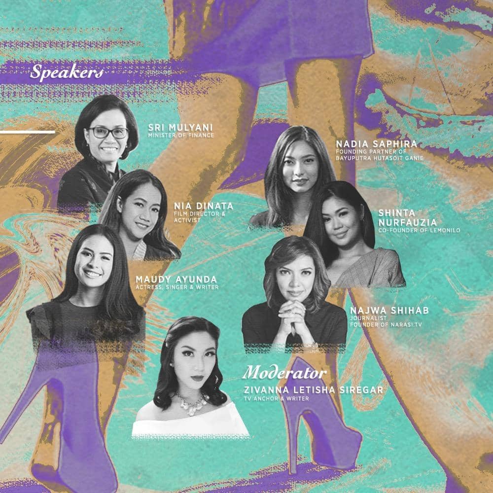 Acara diskusi yang dihadiri oleh Sri Mulyani (Menteri Keuangan), Najwa Shihab (News anchor), Nia Dinata (Film Director and Activist), Nadia Saphira (Founding Partner of Bayuputra Hutasoit Ganie), Maudy Ayunda (Artrist and Activist), Shinta Nurfauzia (Co-Founder Lemonilo) yang diselenggarakan pada 29 Juni 2018 mulai pukul 18:00 WIB hingga selesai ini nggak hanya menghadirkan perempuan inspiratif, tetapi juga menghadirkan musisi ternama.