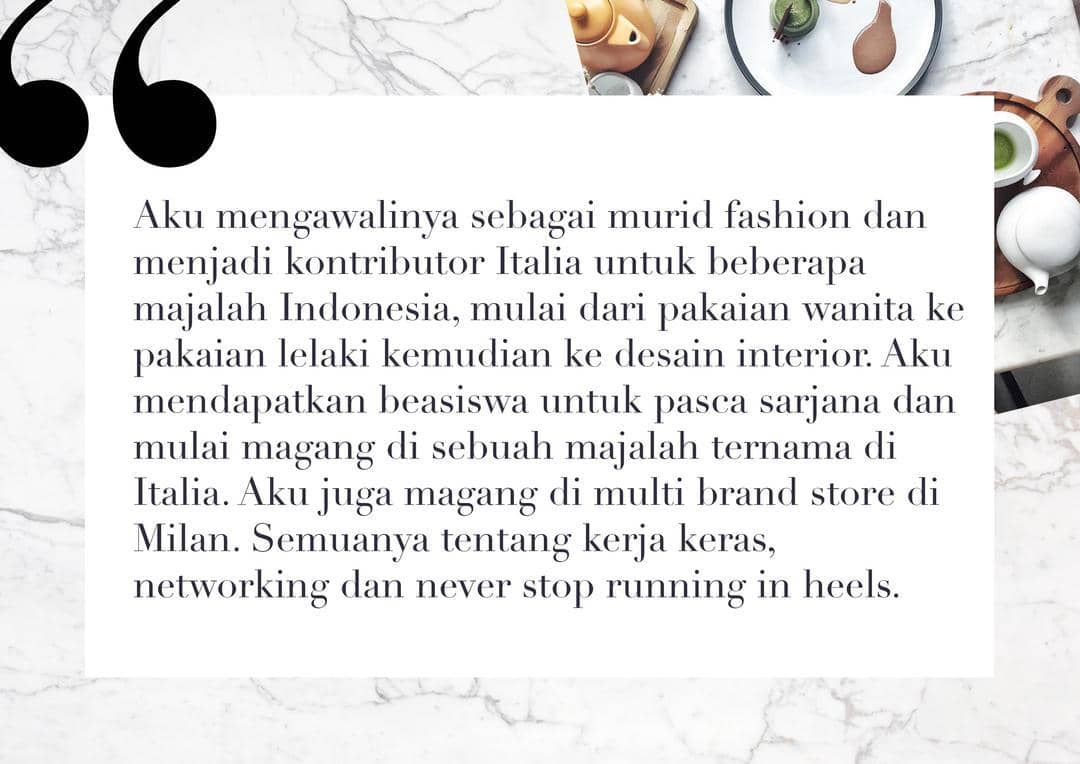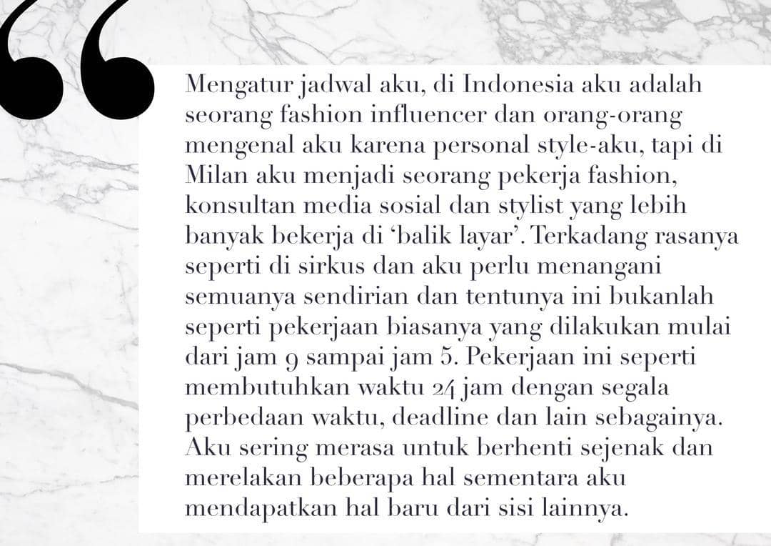3. Bagaimana caranya kamu bisa bertahan di dunia fashion yang terkenal sangat kompetitif, apalagi seperti di Milan?