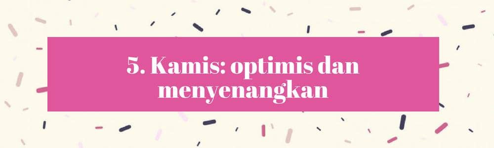 Kata Thur dari Thursday (Kamis) berasal dari nama Thor, Dewa Petir yang juga muncul dalm rangkaian film Marvel Avengers. Namun, jangan membayangkan kepribadian seperti Chris Hemsworth, ya, Bela! Orang yang lahir di hari Kamis memiliki kepribadian Thor, yaitu optimis, ramah, dan menyenangkan di mana pun. Kalau ada acara pesta, orang yang lahir hari Kamis bisa menjadi penghidup suasana!