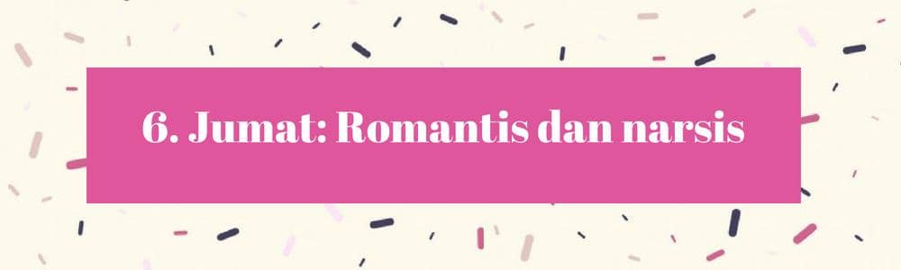 Dikendalikan oleh planet Venus, maka orang yang lahir di hari Jumat penuh dengan cinta, keseimbangan, kecantikan, dan kesenangan. Mereka sangat terobsesi dengan segala sesuatu yang artistik. Namun karena itu pula, mereka juga memiliki kecenderungan untuk menjadi orang yang narsis.