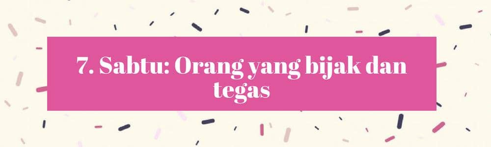 Meski dikendalikan planet Saturnus yang terkenal sebagai lambang dewa kesejahteraan, kebebasan, dan pertanian, kepribadian orang yang lahir di hari Sabtu nggak seperti itu. Sebaliknya, mereka sangat sederhana, bijaksana, giat, suka belajar, dan tegas. Oh iya, mereka juga orang yang menyenangkan!