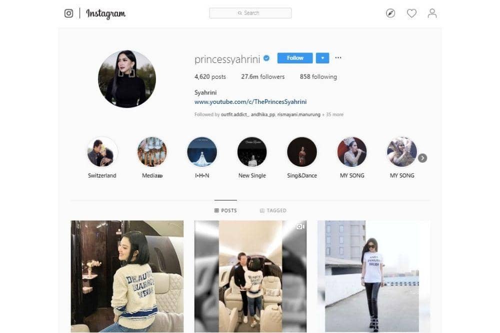 Selebritas yang satu ini memang tak pernah lepas dari sensasi. Termasuk saat berita pernikahannya tersebar pada bulan Februari 2019 lalu. Karena sensasinya itulah dan juga kegiatannya yang selalu membuat publik penasaran, membuat akun Instagram Syahrini kebanjiran followers. Hingga saat ini Syahrini memiliki 27,6 juta followers di akun Instagramnya.
