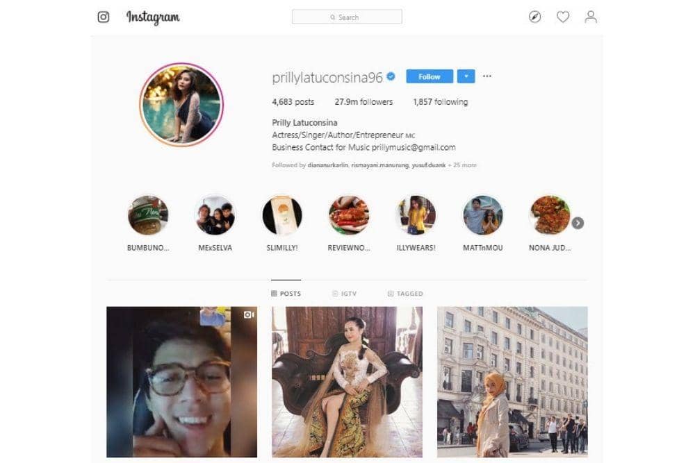 Selanjutnya di posisi ketiga sebagai akun followers Instagram terbanyak ditempati oleh aktris muda Prilly Latuconsina. Menginspirasi dengan banyak prestasi yang telah diraihnya serta bisnis yang dibangunnya di usia muda, membuatnya menjadi salah satu figur publik yang layak untuk diikuti. Nggak heran jika sampai saat ini jumlah followers-nya mencapai 27,9 juta.