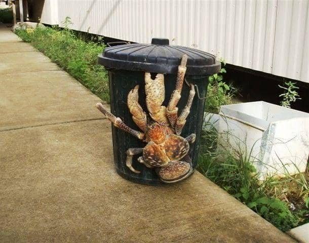 Ini bukan diambil dari sebuah adegan alien dari sebuah film sci-fi yang ingin merusak tong sampah. Spesies yang satu ini disebut kepiting kelapa, arthropoda daratan terbesar di dunia. Dilabeli sebagai kepiting pencuri juga, terkadang krustecea ini dapat mencapai bobot empat kilogram.