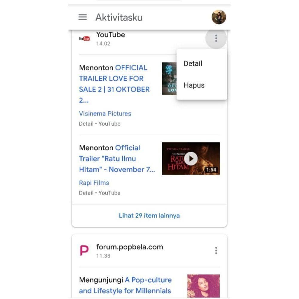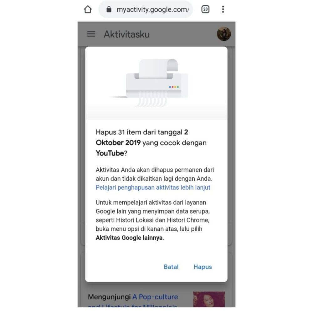 - Pilih hapus dan semua data yang pernah kamu telusuri di tanggal tertentu akan terhapus semuanya