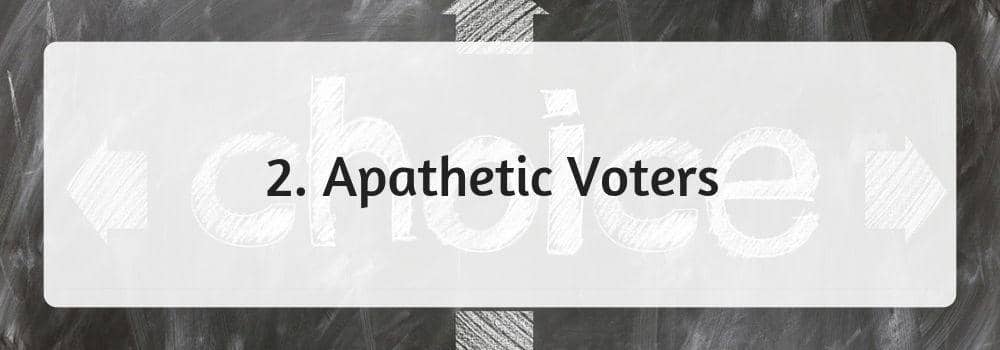 Pemilih cuek atau apathetic voters ada sebanyak 16,3% di Indonesia. Pemilih ini merupakan sosok yang cuek dan tidak peduli dengan partai atau kandidat yang akan mereka coblos di setiap pemilu. Sebagian besar dari mereka masih bimbang dan belum menentukan partai mana yang akan dipilih.