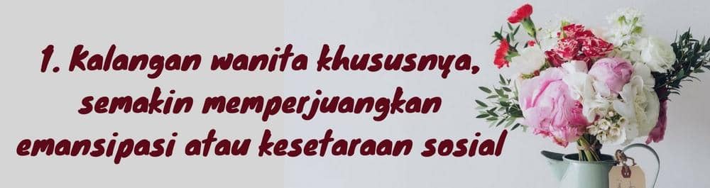 Para wanita tidak ingin lagi tunduk pada tradisi-tradisi lama yang membatasi perkembangannya. Mereka ingin diberi kesempatan yang sama sebagaimana pria, yakni kebebasan untuk menjalani pendidikan tinggi dan memiliki pekerjaan, namun tanpa meninggalkan hakikatnya sebagai seorang wanita. Pada dasarnya, keinginan yang demikian sifatnya positif dan tentunya akan membawa banyak kemajuan bagi masyarakat. Ketika para wanita telah memperoleh haknya untuk mengenyam pendidikan tingkat dasar hingga pendidikan tinggi, juga dibekali dengan keahlian-keahlian praktis melalui lembaga kursus atau seminar, maka upaya ini menjadi langkah untuk meningkatkan kualitas wanita tersebut.