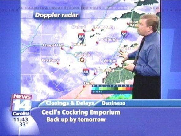 Stasiun televisi biasanya menyiarkan prediksi cuaca setiap harinya. Pada tahun 2004, sekelompok anak menyadari bahwa tulisan yang ada di channel North Carolina News 14 Amerika Serikat diambil dari online message board. Mereka pun menuliskan berbagai hal konyol di sana, yang ternyata berhasil masuk ke tayangan televisi.