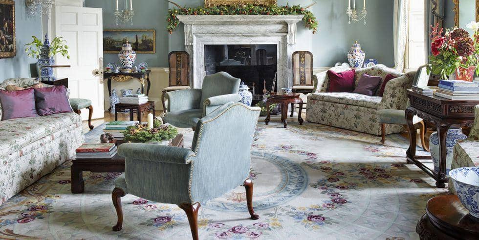 Jika suka dengan tema interior shabby chic, kamu bisa memilih karpet bermotif bunga oriental seperti dekorasi rumah di atas, walau furniturnya didominasi motif bunga, kelihatannya tetap selaras karena pemilihan ukuran motif yang imbang. Jika pada sofa motif bunganya berukuran kecil, pilih motif karpet yang berukuran besar.