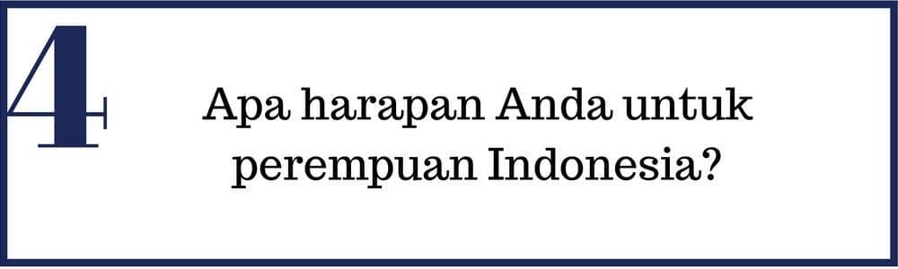 Saya sempat besar di luar juga, saya juga bisa bandingkan kalau kebanyakan orang luar negeri itu nggak dibesarkan dengan norma tertentu. Kalau kita, dibesarkan dengan religius yang tinggi, norma-norma adat dan sosial. Di situlah letak keunggulan wanita Indonesia yang tidak dimiliki perempuan negara lain.