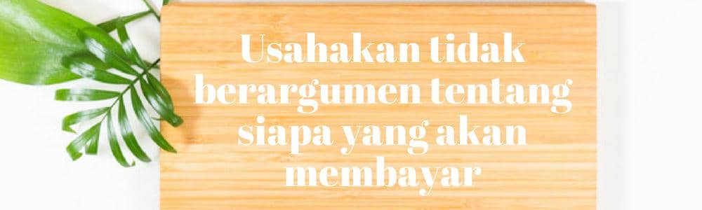 Jika rekan kerja yang jabatannya paling tinggi atau klien yang mengundang kamu untuk makan, maka sebenarnya merekalah yang harusnya membayar makanan. Pastikan untuk tidak banyak berargumen masalah siapa yang akan membayar dan dengan sopan ucapkan terima kasih setelah jamuan makan malam, berjabat tangan dan pertahankan kontak mata. Jika kamu yang mengundang mereka untuk jamuan makan dan mereka menawarkan diri untuk membayar maka tolaklah dengan sopan.
