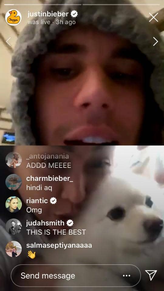 Hari Kamis pagi (16/04), Justin Bieber menyalakan Instagram Livenya dengan tujuan mengajak para penggemarnya untuk live bersama dirinya. Penyanyi “Yummy” tersebut pun memilih secara acak siapa saja yang masuk ke dalam siaran langsungnya tersebut.