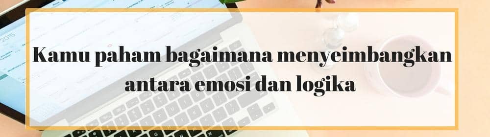 Karakteristik ini akan terlihat jika kamu mampu menyeimbangkan antara emosi dan logika dalam mengambil sebuah keputusan besar. Jika kamu bermental kuat, kamu pasti tahu bagaimana menyeimbangkan dua hal tersebut.