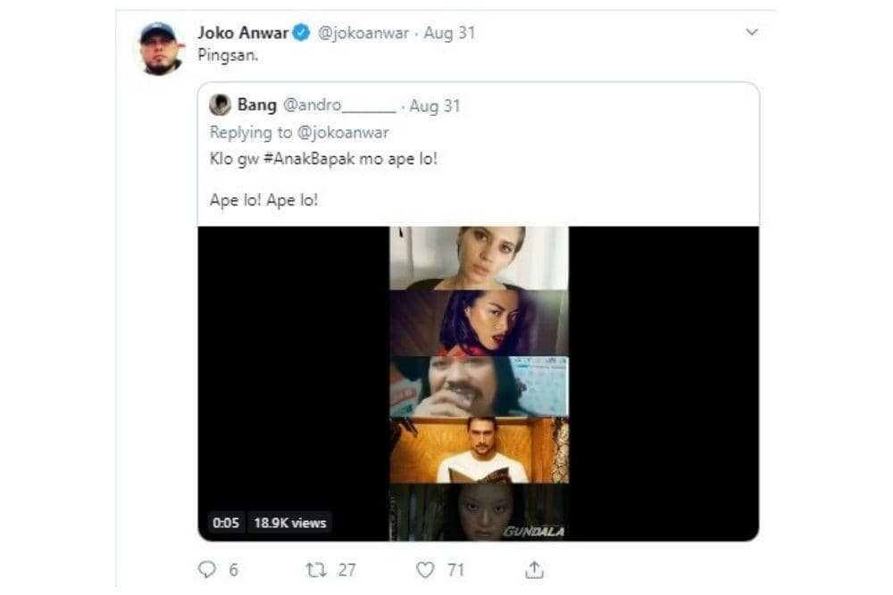 1. Tak cuma foto yang diunggah, ada warganet yang bahkan menempelkan video pada template foto #AnakBapak yang berhasil menarik perhatian Joko. Suaranya yang keras dan terkesan ngegas membuat Joko kaget dan seolah-olah pingsan