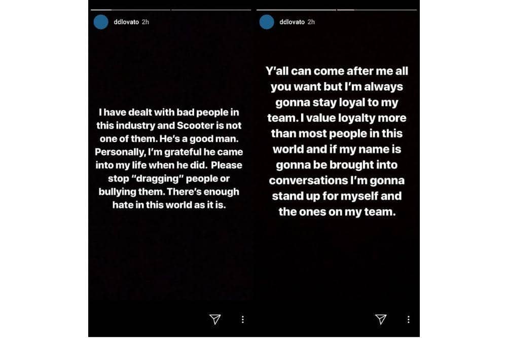 Senada dengan Bieber, Demi Lovato juga menyatakan dukungannya untuk Braun. Menurutnya, Braun adalah sosok yang baik dan ia bersyukur bisa bertemu dengan Braun yang membantu karier musiknya.
