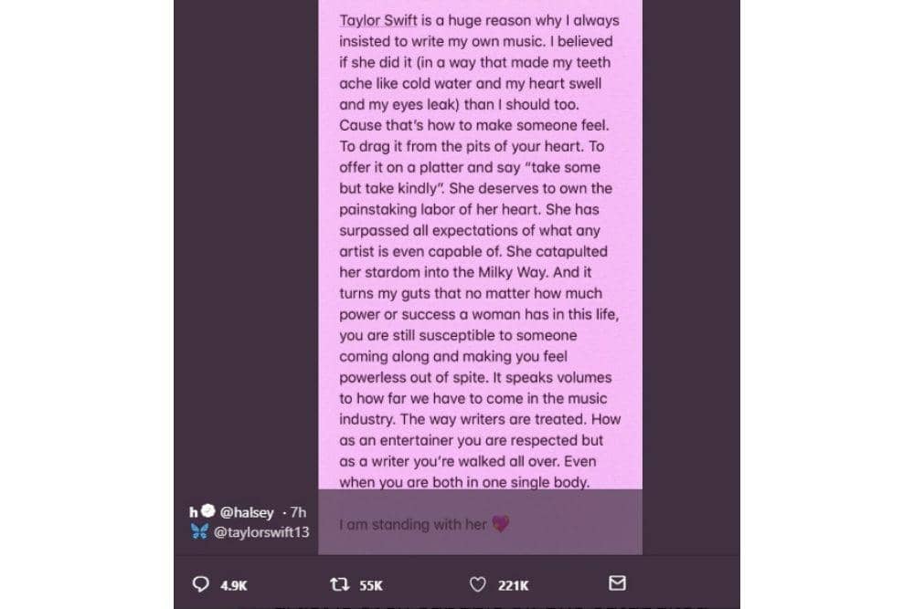 Menjelang rilis album terbarunya 'Lover' yang hanya menunggu hitungan hari, Taylor Swift mengunggah curhatannya di media sosial. Curhatannya tersebut berisikan tentang bagaimana selama ini TayTay nggak diperlakukan secara adil oleh pihak label yang pernah menaunginya. Ia bahkan tidak diperkenankan untuk memiliki karya yang sudah diterbitkan oleh pihak label tersebut.