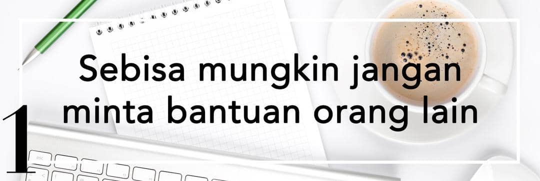 Saat mengerjakan hal-hal penting dalam pekerjaan atau apapun dalam hidupmu, jangan meminta bantuan orang lain. Sesulit apapaun itu, sebisa mungkin kamu harus mengerjakannya sendiri. Jika berhasil kamu akan lebih percaya diri, jika gagal pun kamu akan lebih banyak belajar dan tentunya lebih menghargai dirimu sendiri.