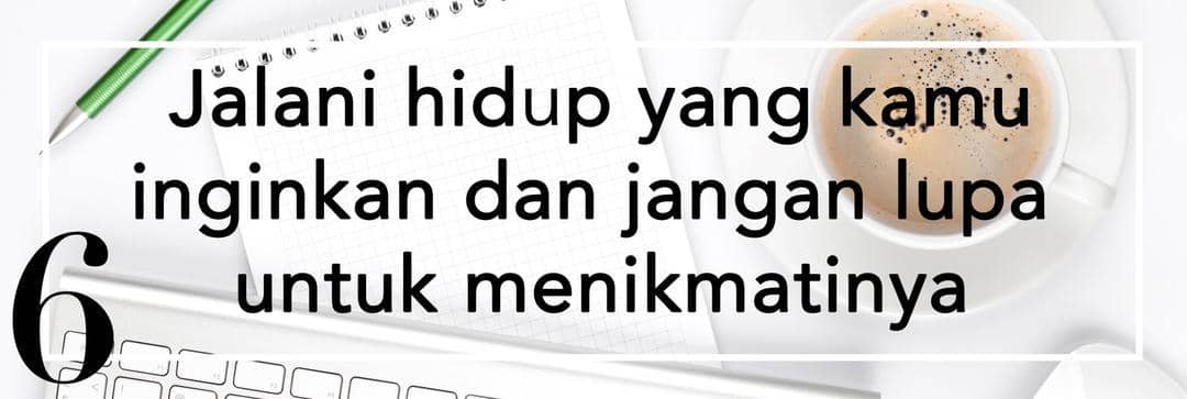 Jangan tua sebelum waktunya, nikmati masa mudamu dengan bahagia. Waktu, uang, dan energi yang kamu miliki harus seimbang. Kerja kerasmu juga harus bisa memenuhi kebutuhanmu, jangan hanya untuk prestige atau semacamnya saja.