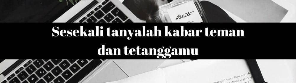 Bisa tiga hari sekali atau seminggu dua kali mungkin. Bisa saja kan mereka membutuhkan seseorang untuk berkeluh kesah atau sekadar berbicara? Terlepas seseorang sedang merasa sendirian atau tidak, ketika ada orang lain yang menyapa dan menanyakan kabarnya, ini akan berarti banyak bagi mereka. Kebaikan macam ini tak butuh biaya kan?
