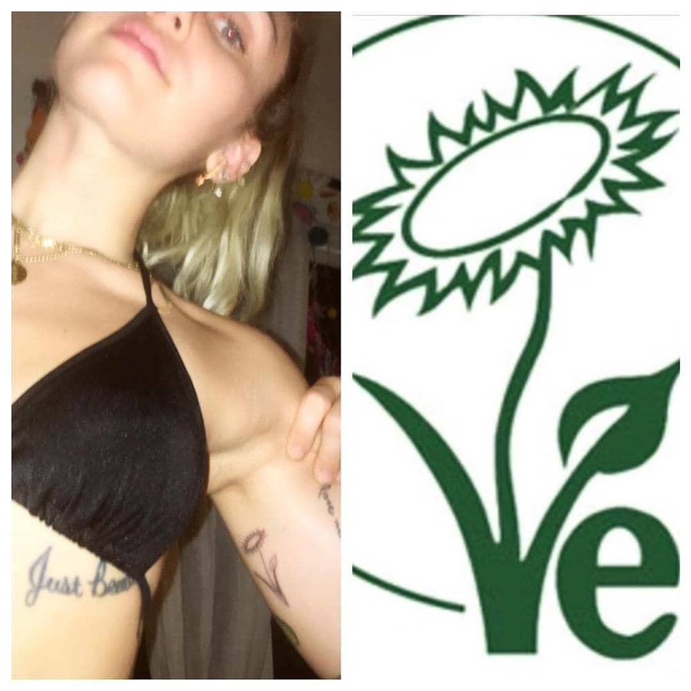 Miley memang memiliki beberapa tato pada tubuhnya. Namun, bila diperhatikan, ia memiliki tato dengan gambar tumbuhan seperti bunga berwarna hijau pada bagian lengannya. Ternyata tato ini dibuat sebagai penanda gaya hidup sehat yang dijalaninya. Seperti pada caption instagramnya, “Vegan for Life.”