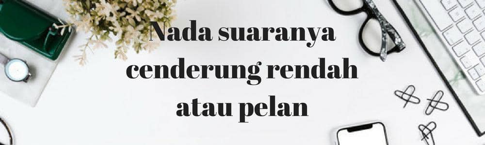 Secara psikologis dijelaskan bahwa mereka yang berbohong punya kecenderungan untuk memelankan suaranya sehingga nada suara yang keluar dari mulutnya terdengar rendah. Jadi, kalau awalnya kamu memulai sebuah pembicaraan dengan nada yang normal bahkan sangat bersemangat, tapi lawan bicaramu sebaliknya, kamu boleh curiga Bela.