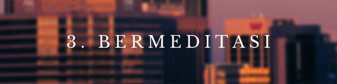 Adakalanya seseorang membutuhkan waktu untuk mencapai ketenangan dalam hidupnya setelah melalui berbagai problematika dalam hidup. Solusinya sederhana saja, sesekali sediakan waktumu untuk bermeditasi. Caranya mudah cukup dengan tarik nafas dalam-dalam, kemudian tutup matamu dan visualisasikan keberhasilanmu di alam pikiranmu niscaya akan menjadi cambuk semangat bagimu untuk bersungguh-sungguh mencapainya.