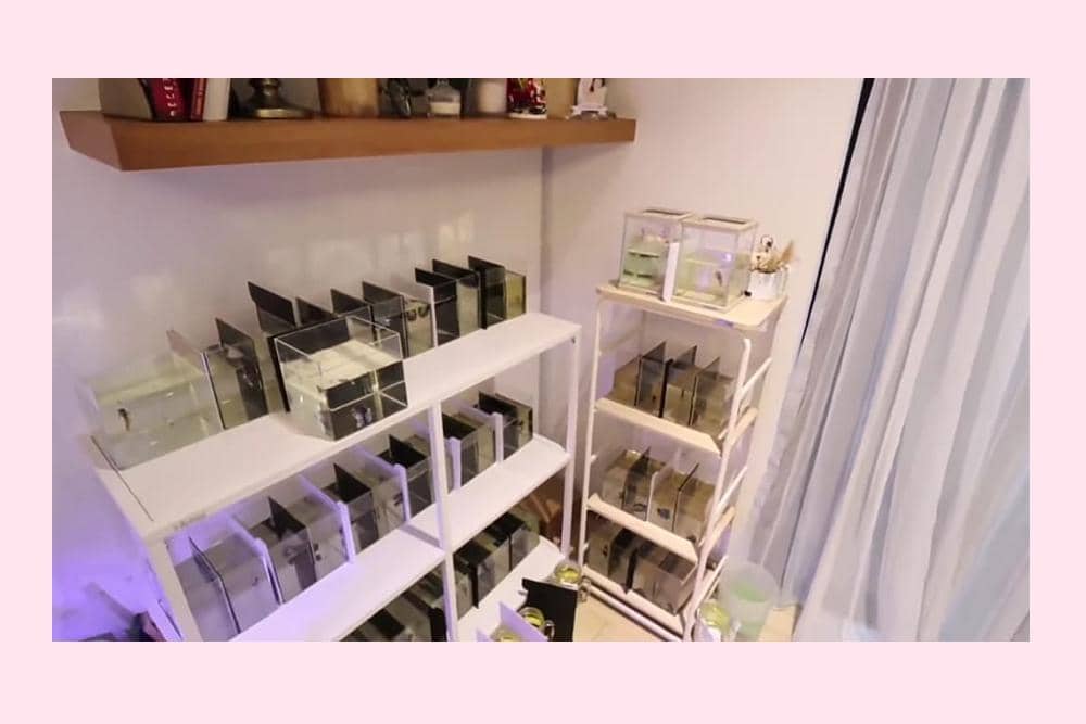 4. Mengaku sedang sangat menyukai ikan cupang, Gisel bahkan menyediakan spot khusus di rumahnya untuk menata akuarium cupang-cupangnya. Wah, banyak juga, ya!