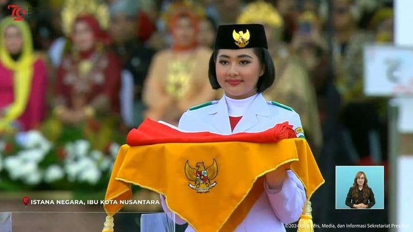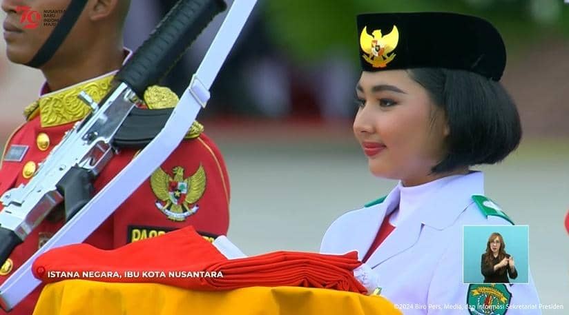 Ini dia sosok Livenia Evelyn Kurniawan. Sang pembawa baki bendera Merah Putih dalam Upacara Pengibaran Bendera Hari Kemerdekaan Republik Indonesia 17 Agustus 2024. Livenia yang berasal dari Kalimantan Timur tentu merasa begitu terhormat mendapat kesempatan sebagai pembawa baki bendera di upacara yang pertama kali digelar di IKN, Kalimantan Timur.