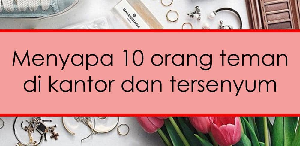 Sapa mereka dengan ucapan “Selamat pagi” paling sedikit kepada 10 teman kerja setiap harinya dan tersenyum. Lihat apa reaksi yang mereka berikan kepada kamu. Lakukan hal ini selama hari kerja, ya.