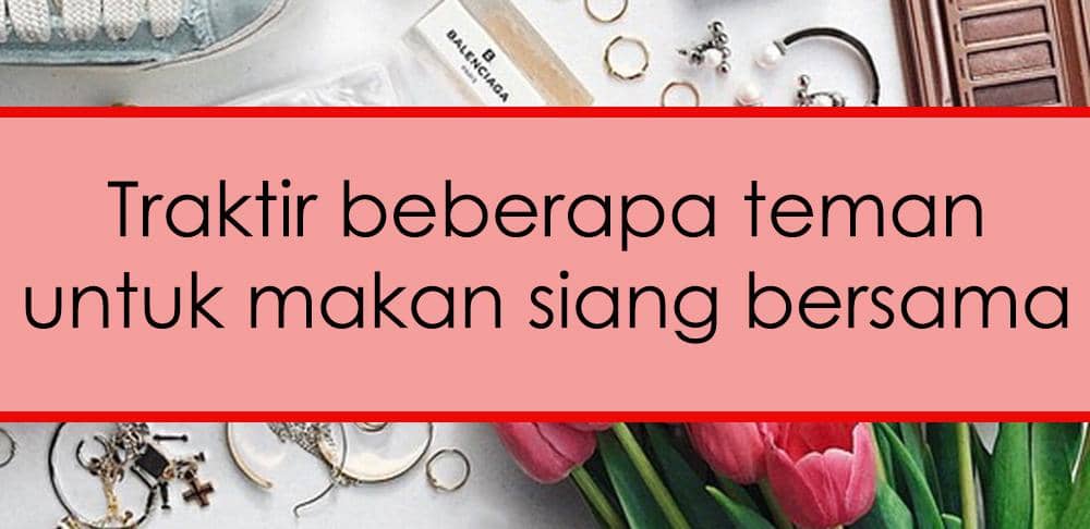 Walau kamu nggak sedang berulang tahun atau mendapat promosi dari bos, nggak ada salahnya untuk berbuat baik dengan mentraktir mereka untuk makan siang atau ketika nongkrong. Siapa tahu, aksi kamu ini menjadi aksi bergilir di antara teman-teman.