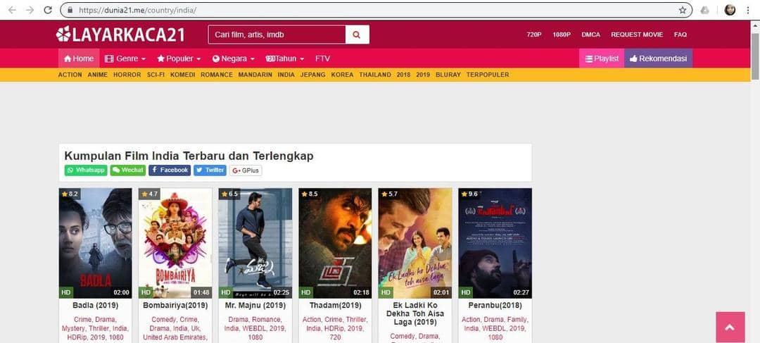 Situs nonton film India sub Indo satu ini hampir mirip dengan situs yang sudah disebutkan pada poin sebelumnya. Kamu bisa mengurutkan film dari tahun rilis film tersebut sehingga kamu nggak ketinggalan untuk menikmati film terbaru.
