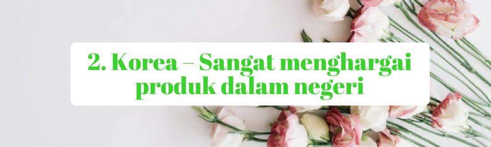 Orang korea dikenal dengan jiwa nasionalis yang tinggi. Mereka sangat senang membeli barang atau menggunakan produk hasil Negara sendiri. Contoh saja Ginseng, jika sakit orang Korea lebih mencari ginseng daripada obat-obatan impor. Kemudian, orang Korea sangat mencintai makanan asli negaranya sendiri, contoh saja kimchi dan ramyun. Pasti di setiap meja makan di rumah dan restoran sekali pun kimchi akan selalu tersedia.