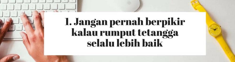 "Duh, kalau aku kerja sama kaya dia pasti aku akan senang dan punya duit banyak." Kalau kamu selalu menganggap hidup orang lain jauh lebih baik darimu, maka kebahagiaan masih jauh ada di belakangmu. Mulai sekarang, tolong jauhkan pikiran buruk itu dari benakmu. Sebab, kamu tak pernah tahu bagaimana perjuangan mereka agar mendapatkan hasil akhir yang kamu pandang enak tadi. Bersyukurlah atas apa yang sedang kamu miliki saat ini.