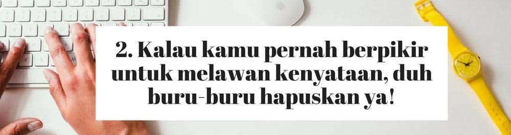 Memang benar, ada beberapa hal yang bisa diubah dalam hidupmu. Kamu bisa menurunkan berat badan, menemukan pekerjaan yang lebih baik, sekolah ke jenjang yang lebih tinggi, dan beberapa hal lainnya. Namun kamu juga harus ingat, ada beberapa hal yang tak akan pernah bisa kamu ubah. Kamu tak bisa mengubah sikap atasan yang memang pada dasarnya menyebalkan misalnya. Daripada kamu melawan kenyataan itu, akan lebih membahagiakan kalau kamu berusaha menerimanya.