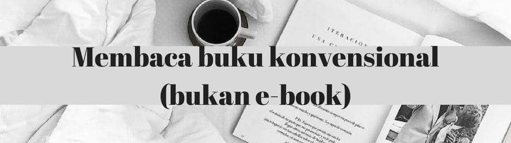 Buku yang dimaksud ialah buku dalam bentuk fisik atau nyata, bukan buku yang ada di perangkat elektronik macam smartphone. Karena gelombang biru yang dipaparkan oleh gadget nantinya malah bisa membuat seseorang sulit tidur dan terus terjaga. Jadi, siapkan novel favoritmu dan dan gunakan lampu baca dengan pencahayaan lembut sebagai pengantar tidurmu.