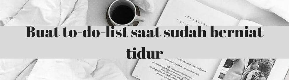 Penelitian membuktikan, membuat daftar kegiatan di selembar kertas akan membuat seseorang lebih cepat terlelap. Mulai sekarang, jangan lupa letakkan kertas dan pensil di meja kamar ya. Mulai rajinlah menulis sambil duduk dengan kondisi kaki serileks mungkin. Saat menulis rencana untuk esok hari, secara tak langsung kamu sedang memerintahkan otak untuk beristirahat dengan damai agar siap menghadapi aktivitas esok harinya.