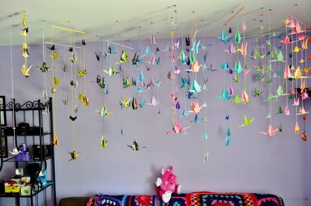 9. Bikin origami bangau jadi tirai macam ini, dijamin kamarmu jadi kece! Budget Rp70 ribuan