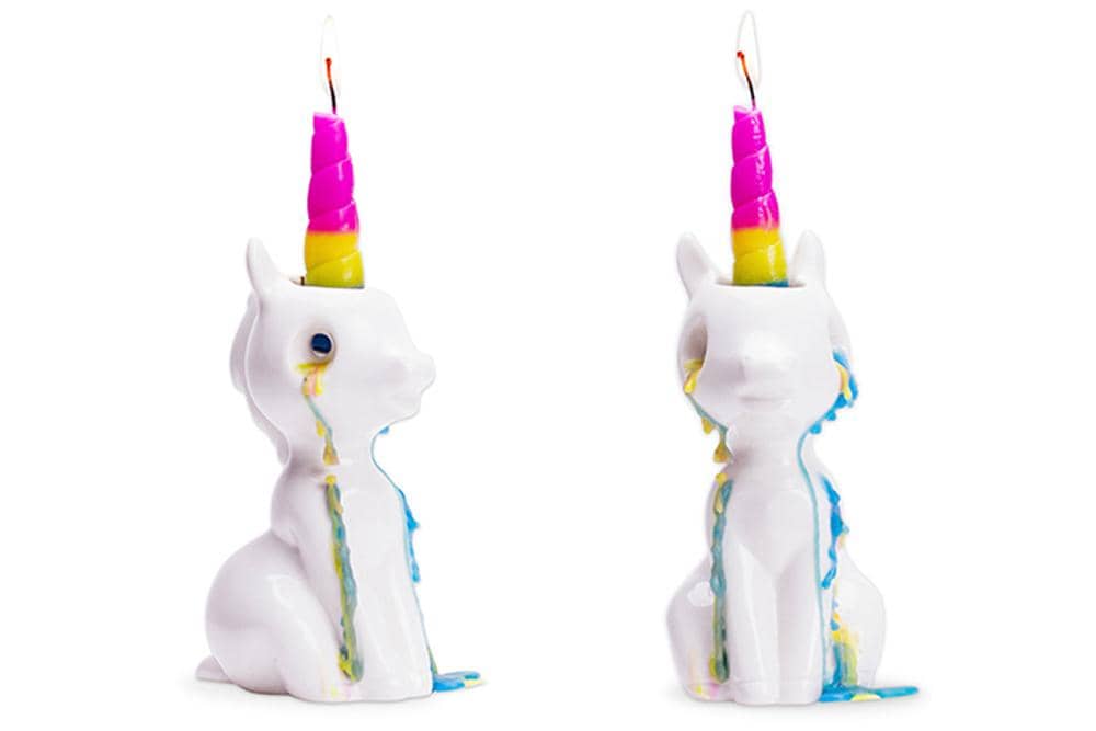 Lilin Unicorn ini bisa mempercantik dekorasi rumah dan dapat membangun atmosfer menenangkan. Untuk membuat unicorn ini menitikan air mata, kamu cukup menyalakan sumbunya dan lelehan dari lilin akan keluar dari kedua lubang mata seolah Unicorn ini menangis pelangi. Wow! So cute!