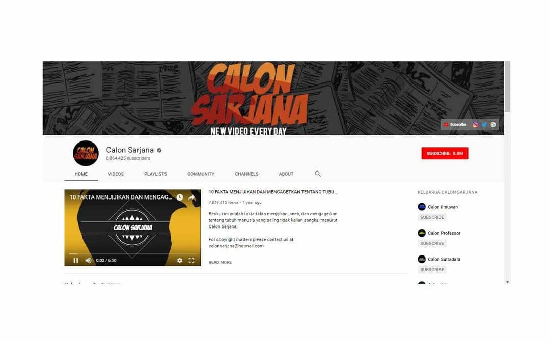 Akun channel YouTube Calon Sarjana yang berisi tentang video mengejutkan, kontroversial, misterius, lucu, aneh, dan unik ini sudah menyita perhatian sebanyak 8,863,710 subscribers. Calon Sarjana mengumpulkan berbagai video asing hingga lokal menjadi video yang menarik untuk ditonton.