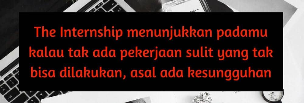 Seperti yang dikatakan 'Kakek' Ben dalam The Intern, kuncinya ialah terus bergerak. Mau dalam kondisi apapun, kamu harus terus bergerak untuk membuat kemajuan. Nggak harus besar, yang penting ada hal baru yang diisi ke dalam hidupmu ini. Bukan hanya Ben, kamu juga akan disuguhkan semangat seorang perempuan muda bernama Jules yang menjalankan start up-nya dengan penuh passion.
