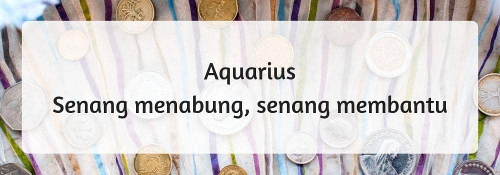 Bicara tentang uang, mereka yang berzodiak Aquarius sangat berbakat dalam menyeimbangkan jumlah pengeluaran dan tabungannya. Aquarius terkenal sebagai zodiak yang memprioritaskan kebebasan pribadi, artinya mereka mengerti kalau menabung adalah kunci kebebasan finansial.