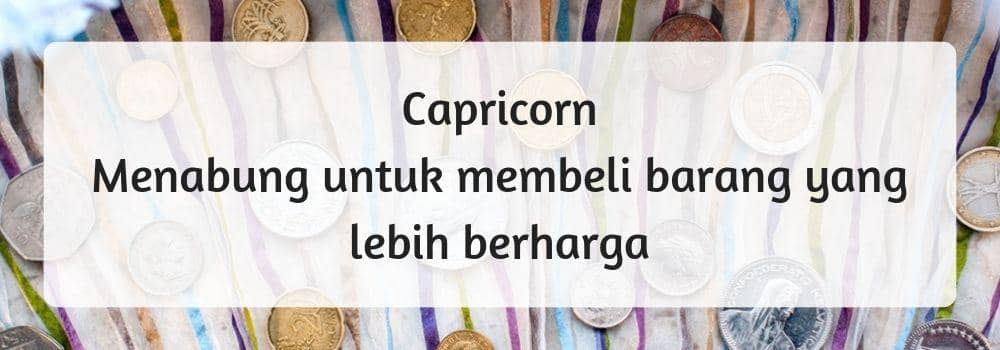 Zodiak ini lebih memilih bekerja keras dan menabung untuk membeli sesuatu yang mahal ketimbang menghabiskan uangnya untuk sesuatu yang tren dalam waktu singkat. Nggak ada yang pernah menyebut Capricorn sebagai zodiak yang murah. Sebab mereka tahu pentingnya merasa aman di masa depan dan memastikan untuk memiliki simpanan dalam situasi apapun. Capricorn nggak suka terjebak dalam utang atau mengambil pinjaman, dan akan membayar kembali secepatnya jika memang berutang.