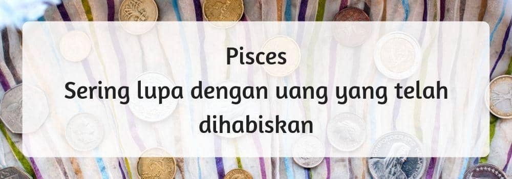 Meski berjiwa kreatif dan penuh seni, Pisces cukup acuh tak acuh dengan keuangannya. Mereka ingin memasang target dan menabung untuk dapat menggapai mimpinya. Namun, mereka nggak pernah membuat atau menyiapkan rencana keuangan sehingga sering lupa menabung dan nggak dapat melacak rekam jejak uang yang telah dihabiskan.