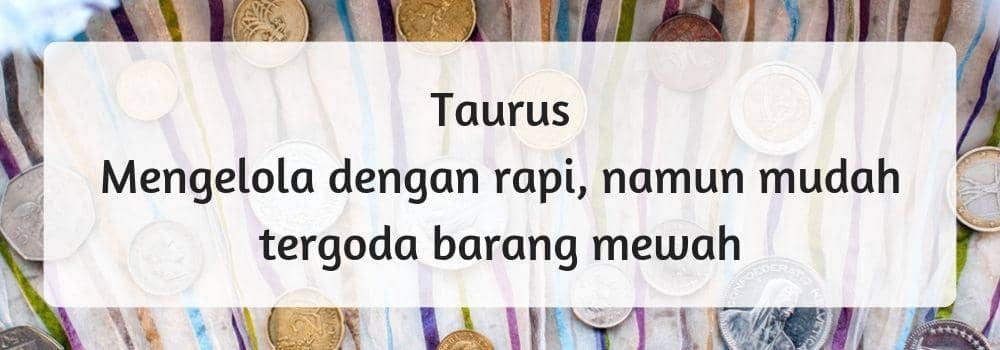 Taurus menekankan kestabilan. Artinya, mereka akan selalu mengelola keuangannya dengan rapi. Entah itu dengan membayar tagihan secara tepat waktu atau menabung langsung ke deposit. Namun di sisi lain, Taurus juga terkenal mudah tergoda dengan apapun yang terlihat mewah, yang dapat membawa kesenangan pribadi. Ini menjadikan mereka sebagai zodiak yang memiliki pengeluaran besar.