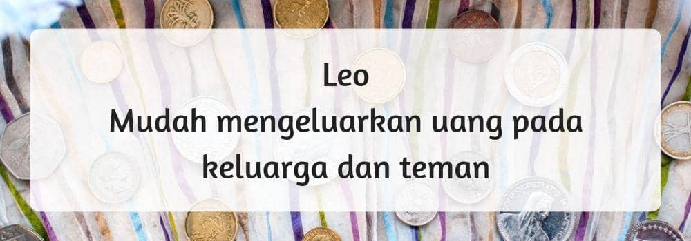 Leo sangat baik dalam urusan manajemen keuangan. Mereka cenderung menggunakan kartu kredit ketimbang mengeluarkan uang tunai karena mengerti pentingnya membangun nilai kredit yang baik. Leo pun sangat protektif dengan keluarga dan teman, mengesankan jika dirinya siap membantu secara finansial. Berkaitan dengan hal ini, mereka pun mudah mengeluarkan uang untuk keluarga dan temannya. Sekalipun itu hanya sekadar untuk membeli hadiah.
