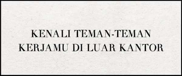 Sekali-kali kamu harus hang out dengan mereka di luar jam kantor. Pergantian suasana itu juga penting untuk membangun chemistry supaya kamu merasa nyaman dengan mereka.