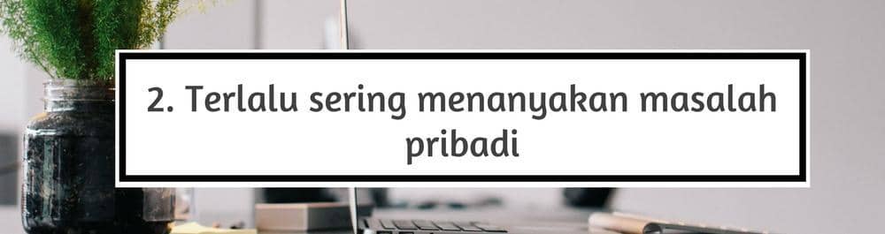 Ini juga salah satu hal yang sering sekali tidak kita sadari. Kita merasa dekat dengan salah satu rekan kerja dan kita penasaran sama apa yang dia alami. Kemudian tanpa malu dan lupa kalau itu di kantor, kita menanyai rekan kerja tentang masalah pribadi yang dia miliki.