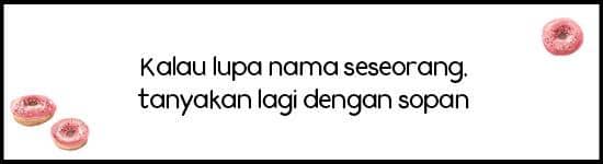 “Maaf, kemarin saya lupa nama Anda. Bisa tolong diulang lagi?”