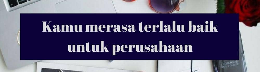 Merasa terlalu baik di sini bukan berarti menyombongkan diri ya, Bela. Maksudnya adalah ketika kamu sadar bahwa kamulah orang yang sangat diandalkan perusahaan karena kemampuanmu namun kamu merasa suit berkembang di kantor karena keterbatasan yang ada. Keterbatasan tersebut terletak pada fasilitas kantor sehingga jika mereka menyukai idemu, mereka juga sulit untuk mewujudkannya.